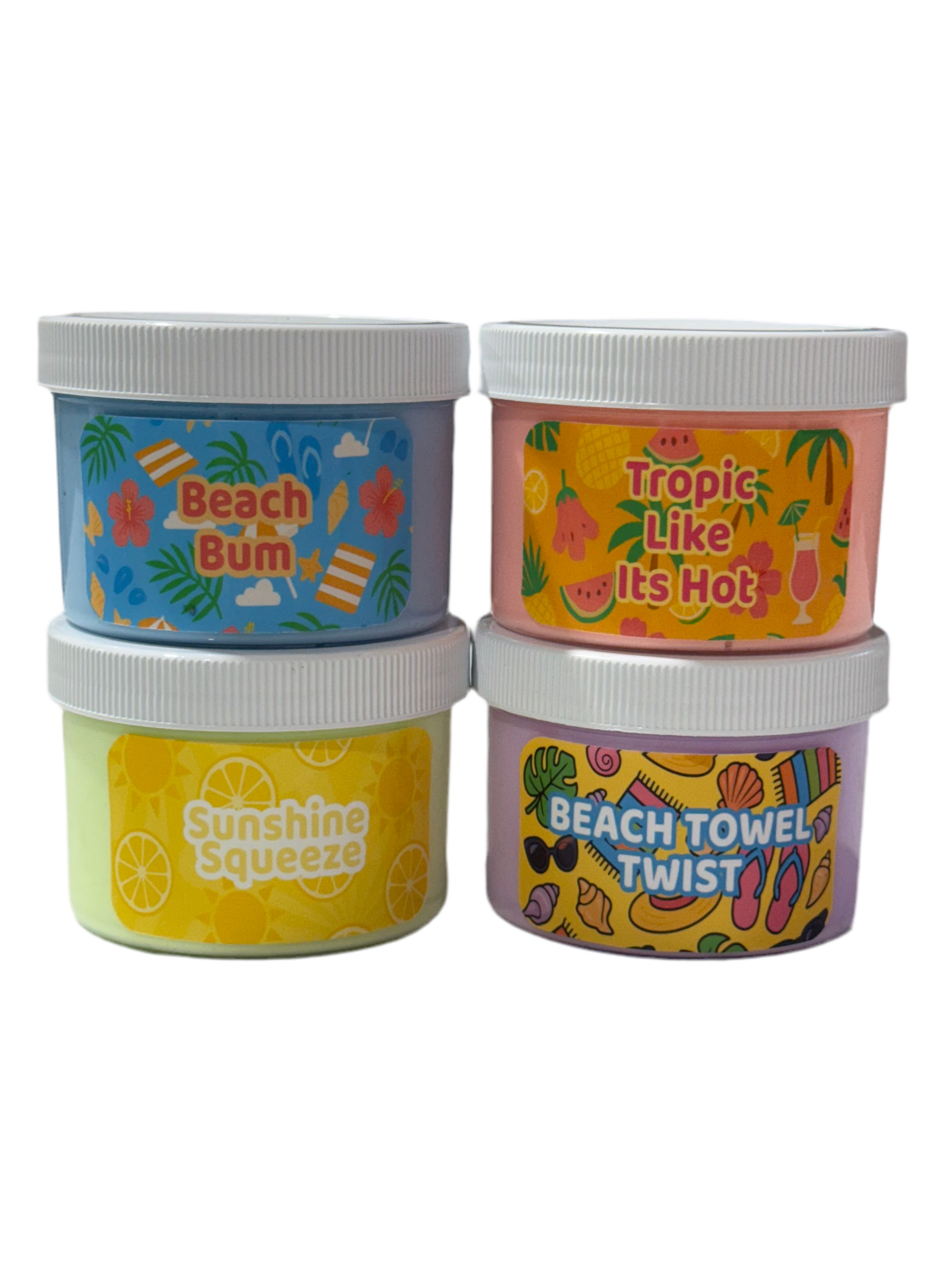 Ready to pack your bags for the ultimate Slay Haus vacation? The Slaycation Summer Starter Pack brings you four bold, neon slimes inspired by pool days, beach vibes, and fruity favorites - no passport required. Each clay-heavy slime is ultra-smooth, satisfyingly thick, and scented like summer in a jar: